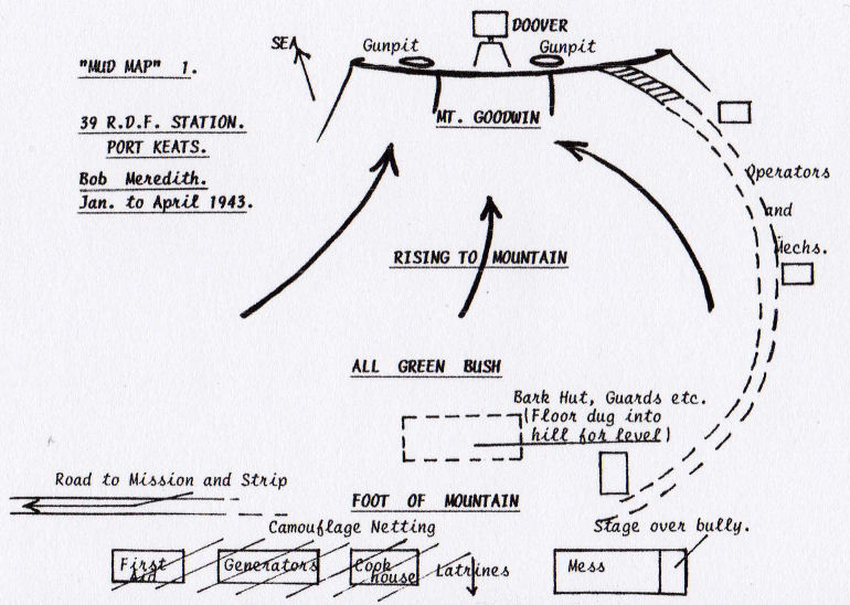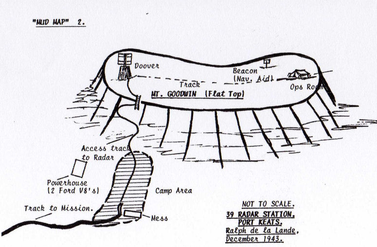 39 Radar Station RAAF was initially located at Darwin, in the Northern Territory on 25 June 1942. On 17 August 1942 the radar station relocated to Mount Goodwin near Port Keats which is also in the Northern Territory. The Doover was on the north east corner of Mount Goodwin. There was a WW2 airfield at Port Keats. The native mission was located about 5 miles away.