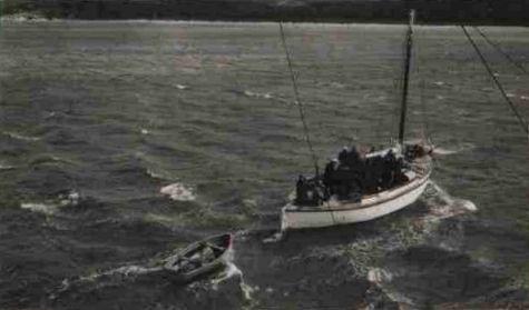 Small boat from HMAS Orara recovers the body of the co-pilot of Wirraway A20-189