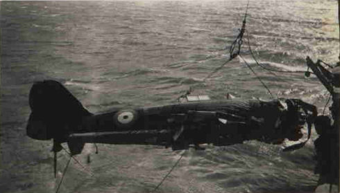 The following photographs show the wreckage of Wirraway A20-189 being recovered and taken on board HMAS Orara after crashing into Bass Strait off the Ninety Mile Beach on 6 October 1941.