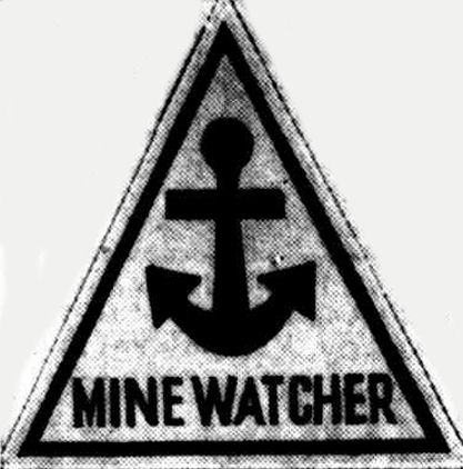 The emblem was a dark navy blue with an anchor and the word "Minewatcher" in