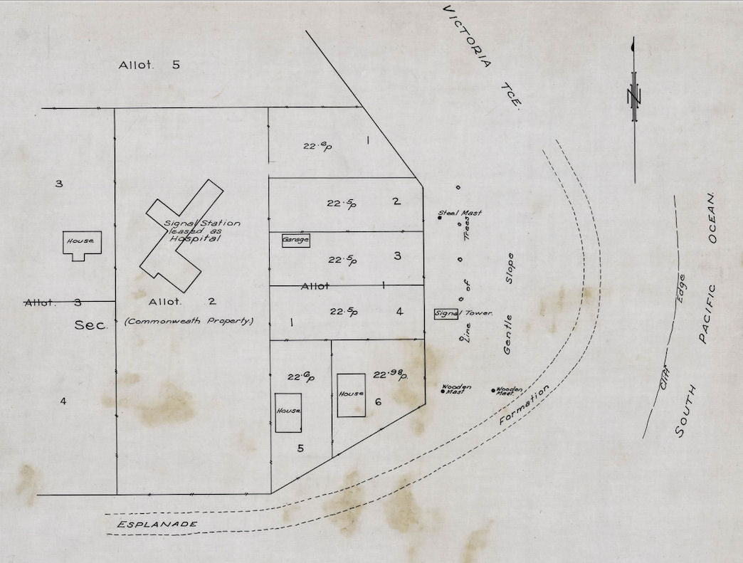 In 1942 the Navy constructed a three storey reinforced concrete building at Wickham Point, Caloundra, near today's Light Beacon at Wickham Point which became RAN Station 1 Caloundra PWSS. Unfortunately this building was demolished in the late 1950's. The front lawn of today's Sea Eagle Units at 38 Victoria Terrace was the site of the Port War Signal Station.