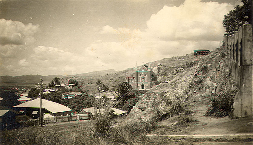 The Catholic Sacred Heart Cathedral in Stanley Street can be seen near the