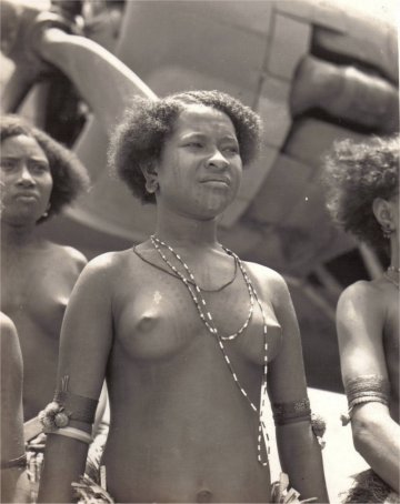 Native women beside a B-17 Flying Fortress in New Guinea