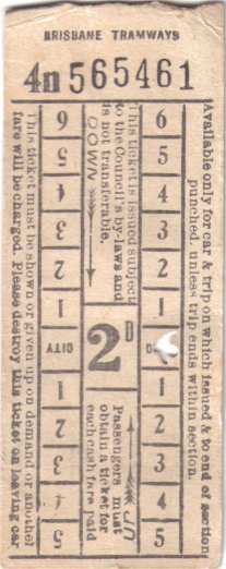 Brisbane Tramways Ticket