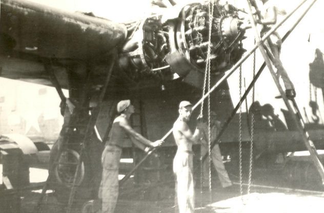 I'd like to than Robert M. Ward, son of M/Sgt Robert E. Ward for identifying Lindbergh and his father in this photo. |