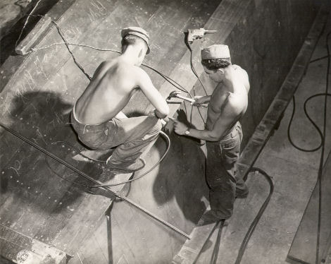 engine installation, coamings, and gun rings on craft during its construction 11