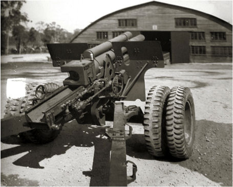 A 105mm M2A1 Howitzer was modified by the 48th Ordnance Company and equipped with dual GMC wheels, designed to increase flotation in mud & sand.