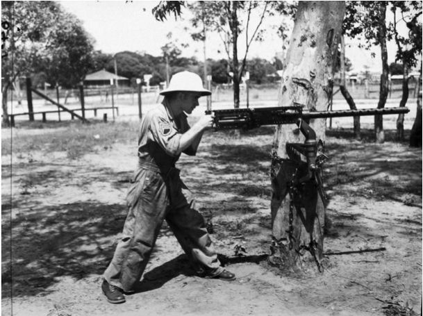 a 50 calibre machine gun mounted on a tree with a chain on 2 December 1943