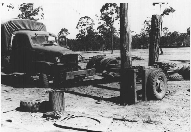Tyre-changing using a "Yankee-Joe" Chev truck and