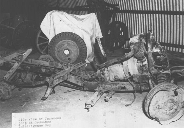 There was also an Ordnance Intelligence Unit located at the Coopers Plains Ordnance Depot. Their job was to gather intelligence from captured Japanese ordnance and vehicles. Amongst the Japanese vehicles and weapons that were restored for intelligence evaluation were a Japanese Scout Car 95, a twin 25 mm AA gun and mount, a Japanese type Jeep, motor tricycle and conventional motor bike.