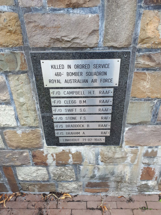 Plaque at Linkhout for the loss of Lancaster PB471 of 460 Squadron RAAF