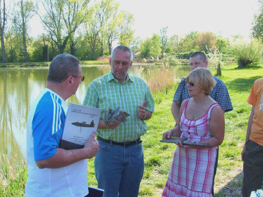 last Thursday my friend Uwe Benkel and I visited the Oggersheim, a suburb of Ludwigshafen/Germany. We had been called by a local fishing club whose pond had been dried before to get rid of the mud inside. After the water was gone they found parts of an air plane engine in the mud. So we went there to find it was the remain of a Lanc of 460 Squadron crashed on the above mentioned date.