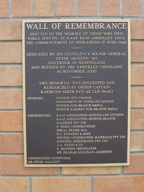 The name Amberley was given to the area by Mr James Edwin Collett, a farmer who arrived from Sussex England in the 1850's to settle on a property at 3 Mile Creek west of Ipswich. He went by the name Edwin Collett. He called the property "Amberley" after his home town of "Amberley" a small village on the River Aron in East Sussex. James Edwin Collett and many of his family and relatives are buried just off the Air Force base in a local cemetery.