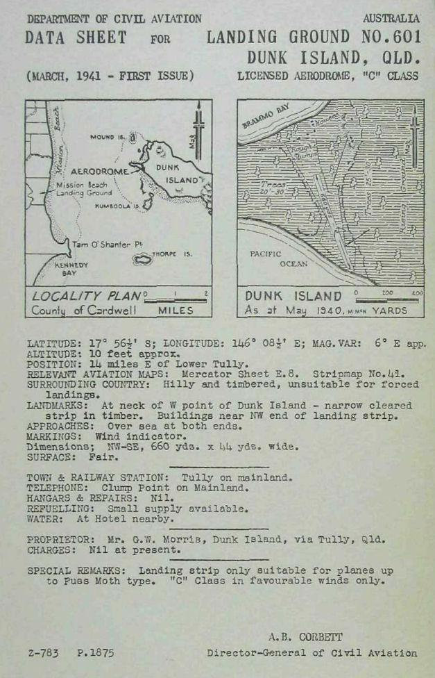 On 2 April 1944, F/Sgt Rossiter in D.H.82 A17-484 flew from Garbutt Airfield to Dunk Island and returned.