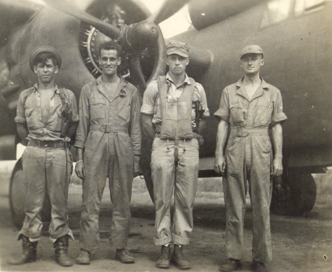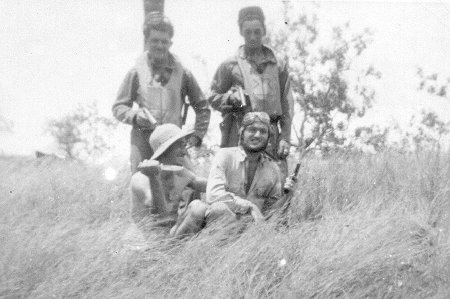 Kosiah, "Ace" Guiles, Pete Mackies KIA, Bill Swain (dad) Photo was taken at Port Moresby in Feb '43 |