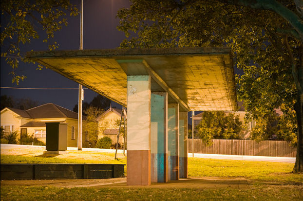 The Brisbane City Council adopted an innovative design for its public air raid shelters such that after the war, the brick walls around them could be removed leaving a cantilevered roof concrete structure ideal for bus shelters or general shade.
