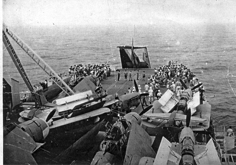 We were on an overtime gang assembling Hellcats for dumping offshore. The Japs were still on base and their aircraft were lined up on the perimeter. I have photos somewhere and will be in touch in early Sept when I return from holiday.