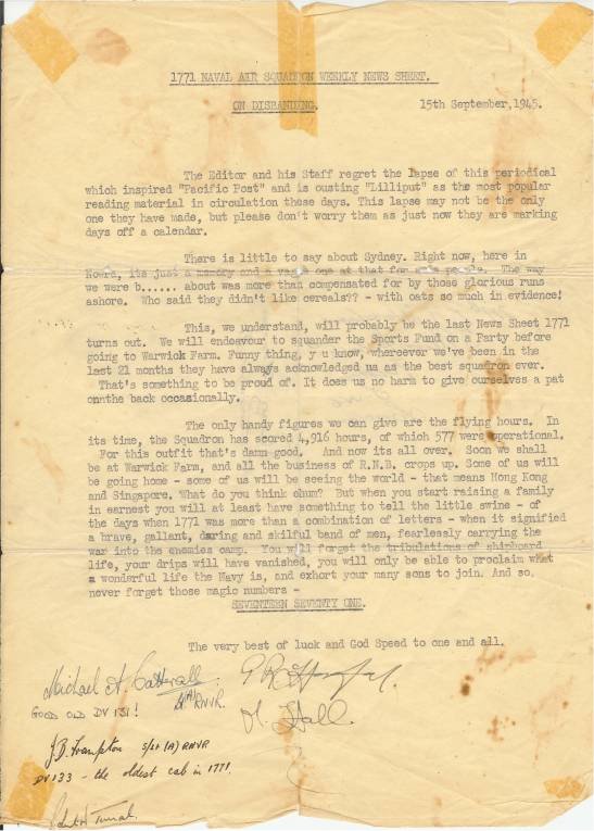 Andy Catterall's father, Michael Catterall, was a member of 1771 Squadron since it was founded until the end of the war.