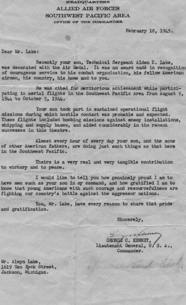 I dont know if you saw this on my web site but it is posted there This is signed by George Kenny to my dad. My father won the air medal.