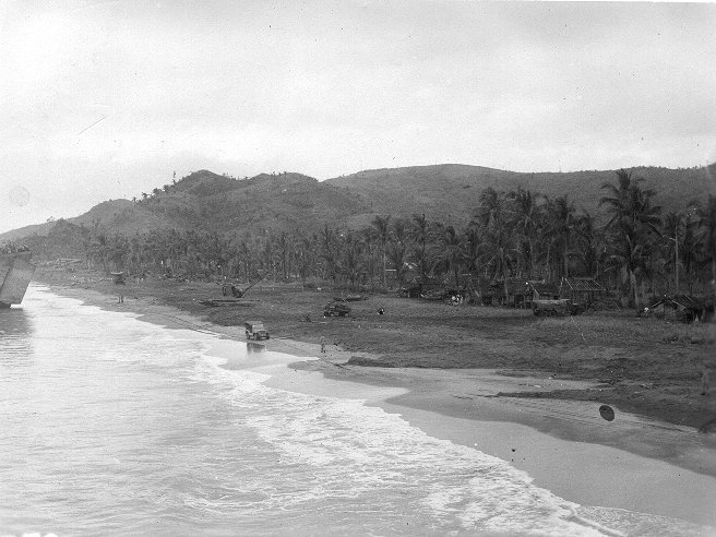 The fighter strip was about two miles inland from our camp. One night we had a red alert and there was a lot of ack-ack over by the strip. The Japs didn't drop bombs that nite - they dropped paratroops. We put perimeter guards around the camp area, and put in a long night. Don't believe any of us did any sleeping that nite. There was a quartermaster outfit down the beach from us and there was a lot of small arms fire from that direction. but it proved to be nervous fingers. At daylight the infantry rounded up the Japs in short order.