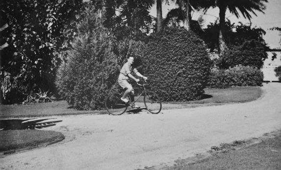 Major Sears on a bicycle at Newman House