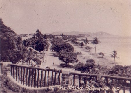Town Baths, The Strand - now Tobruk Memorial Pool, Magnetic Island in the background - 1940's |