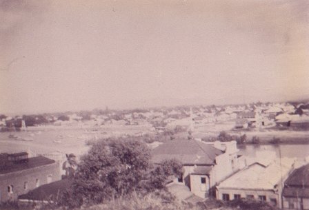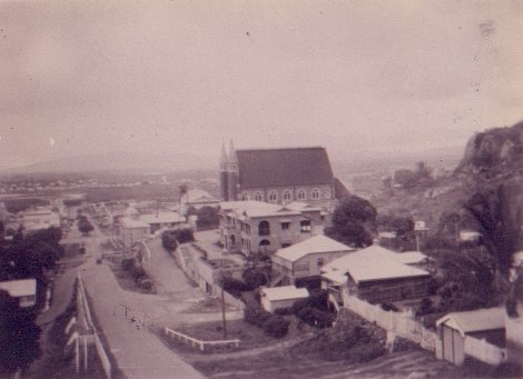 Stanley Street from Victoria Street overpass, city at bottom of hill, Roman Catholic Cathedral in centre of photo - photo taken in 1940's |