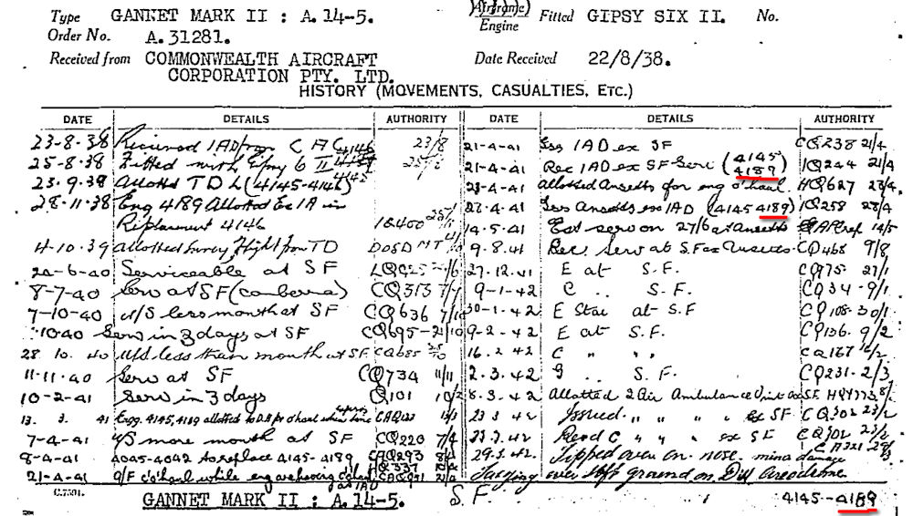 The boys waited till nightfall approached and managed to take some souvenirs from the crash site. Bill unscrewed an engine brass plate with a screw driver that he happened to have with him. Dave Wheeler has been attempting to identify the aircraft involved over the years and recently contacted David Ellery at the Canberra Times, who ran the article on the incident and sought assistance to identify the aircraft involved. The brass nameplate identifies that it was from Engine No. 4189. This engine number was the clue that was needed to identify the aircraft as Australian-built CAC Gannet Mark II, Serial No A14-5.
