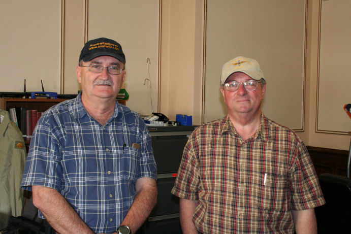 Jack Carr Mackay, volunteer Guide and ex Coast Watcher, with Gus Breymann at the MacArthur Museum Brisbane