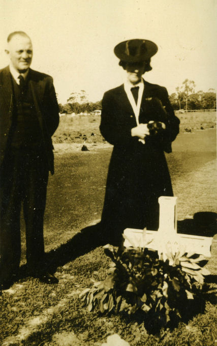 Mrs Frances Willcocks at their son's grave at Bundaberg Cemetery