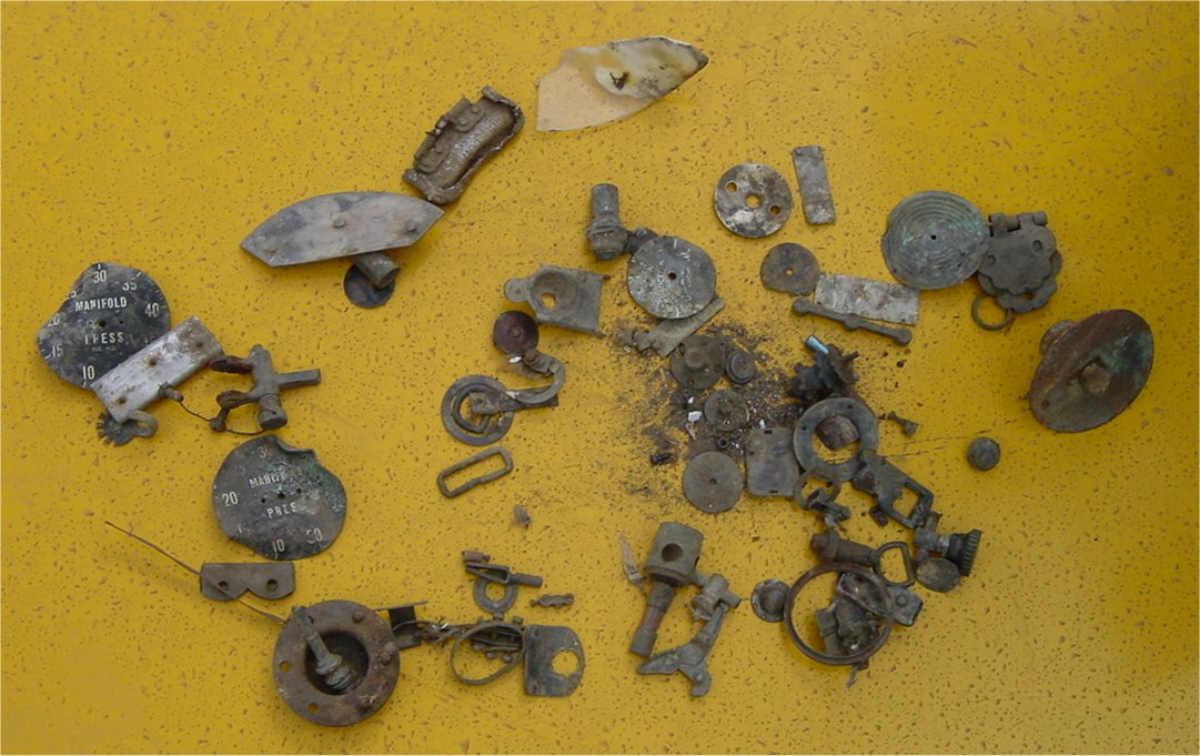 In early 1993, I served within the Army within the Brisbane Area and worked at Victoria Barracks attached next to the Army EOD team. A friend of mine told of a recent location of a crashed aircraft south of Brisbane in the Gailes area where they had recovered an incendiary bomb and some wreckage within the area. After finding the map reference and making a number of attempts to locate the site, I eventually found some wreckage in a creek bed. After fossicking around, I located the steering control for the aircraft, parts of the manifold pressure gauges, various damaged parts of the instrument panels, damaged wrist watch,1x Australian penny, RAAF Insignia wings, 1x ID Discs of Flight Sergeant Neville Barron 435656. After writing away to the RAAF Historical Society in Canberra, I received details from Mr. R.K. Piper that the aircraft was A9-670 Beaufort that had crashed in the area shortly after gunnery practise at the nearby Gailes range with a copy of Preliminary Accident was attached with details of the other crew and where some of them have been buried