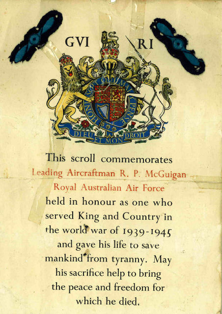 Certificate of Sacrifice for LAC R.P. McGuigan