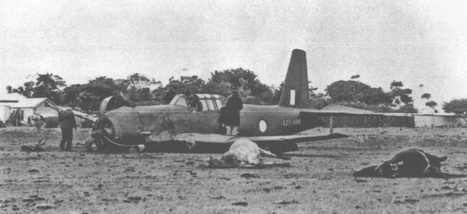 Vultee Vengeance A27-560 from RAAF Station Laverton made a forced landing at Carrum in Victoria at approximately 0930 hours on 2 May 1945. It plunged through three wires fences, and 200 yards of vegetable gardens before colliding with two cows, both of which were killed. The pilot escaped with minor head injuries. The aircraft had been cooperating in exercises with the Navy over the Flinders Naval Depot, when its oil supply ran out. The engine cowling, undercarriage and wing were badly damaged.