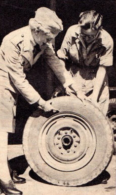 WNEL mechanic Mrs Stewart helping Patricia with a flat tyre