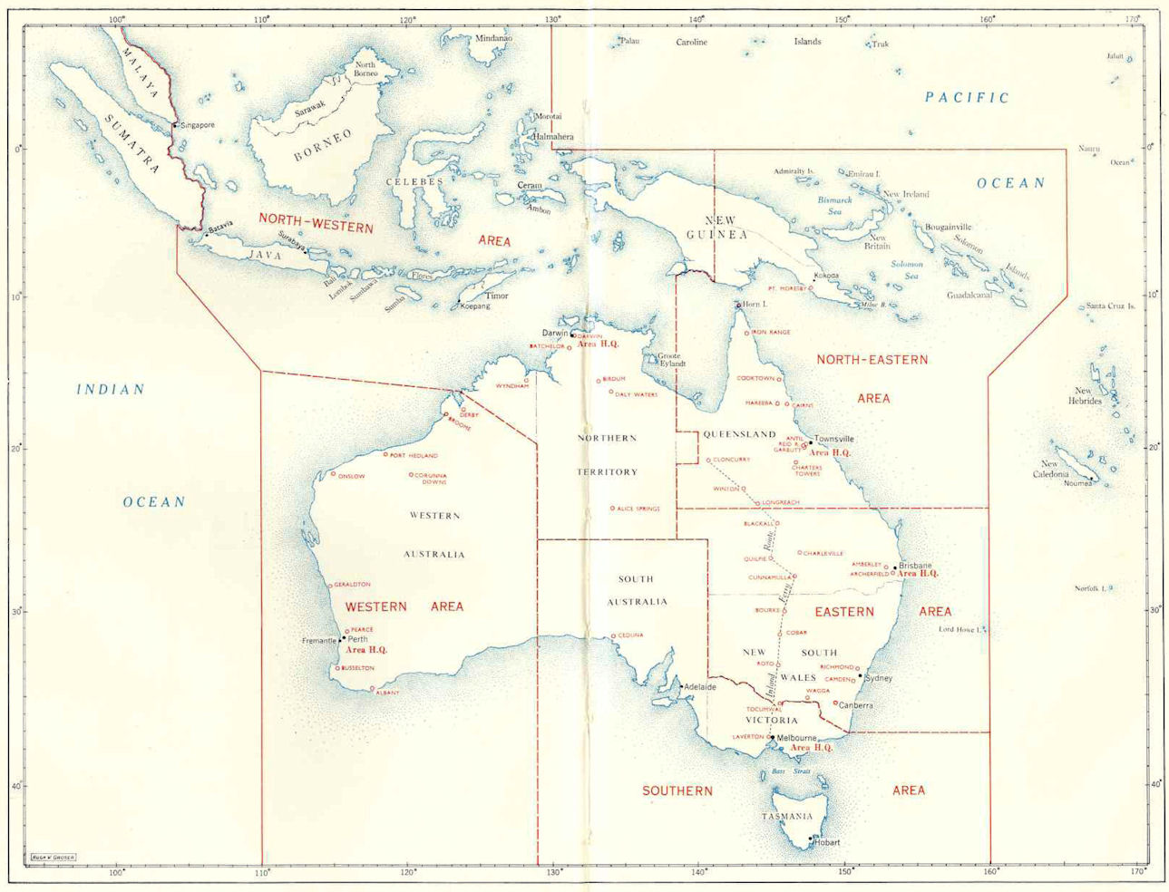 On 18 July 1942, the territorial boundaries of the five (5) operational Areas were revised, vide A.A.F. General Order No. 32.4 Aug 42