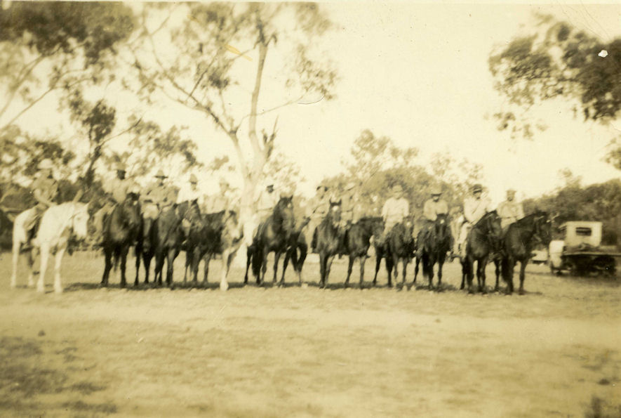 29 September 1943 - The American soldiers and a few locals before going to look for the American airman who fell out of the aircraft. Eric Landsberg, Roy French, Mick Perks and Arthur Bluff, an aborigine were the locals on horseback as well as Lieutenant Dubell and seven of his men.
