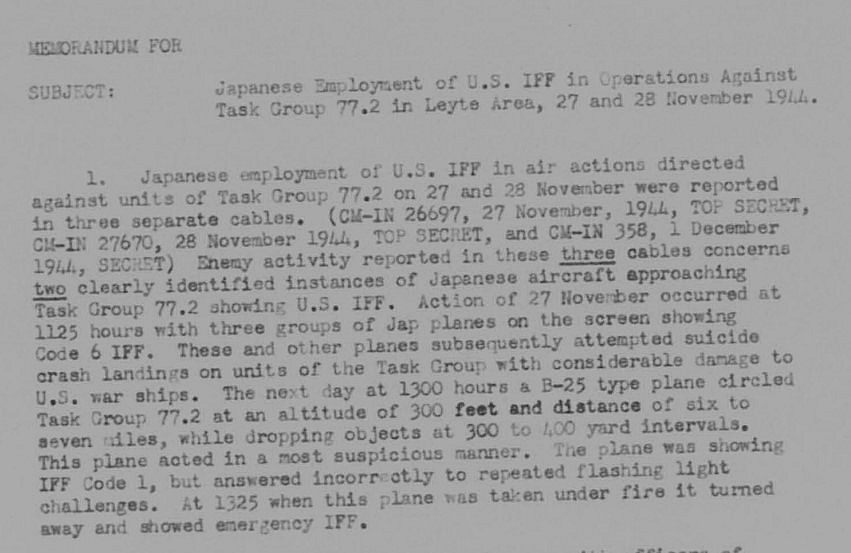 Philippines and the 31 May 1944 attack on Biak also included fake IFF codes.