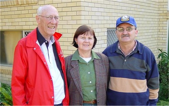 Gordon Heup, with Kay and Peter Dunn on 8 July 2001
