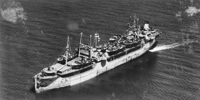 1. By authority of C.N.O.'s confidential dispatch 191902 of April 1944, GROUP ABLE consisting of PT's 488 through 492, departed Balboa Canal Zone, at 1430 Roger 23 April 1944, aboard American Tanker GULF MARICAIBO enroute to Brisbane, Australia., and continued on this journey until 14 May 1944 when ship's captain received diversion orders authorizing procedure to Milne Bay at 1200 King 21 May. On 22 and 23 of May, PT's 488 through 492 were unloaded and proceeded to M.T.B. Base #4, at Kana Kope, N.G.